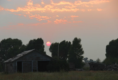 Wildfires are burning 500 miles to the west, so the sky was smoky, with an eerie red sun.